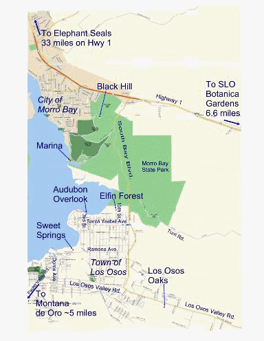 (Routes to Montana de Oro, Sweet Springs, Elfin Forest, Los Osos Oak Preserve,