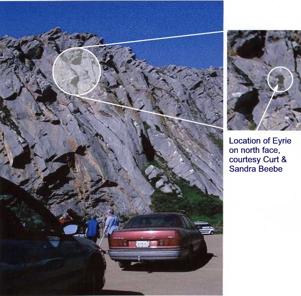 Location of Eyrie on north face, courtesy Curt & Sandra Beebe
