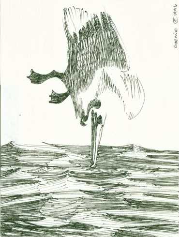 of water from his elastic pouch. Just as he was opening his bill to turn the