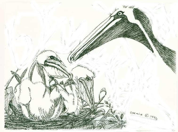 grasses, and even sea weed. Mrs. Pelican worked hard shaping the nest and making