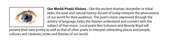 audience. Local poets Ken Solomon and Beverly Boyd will present their own poetry
