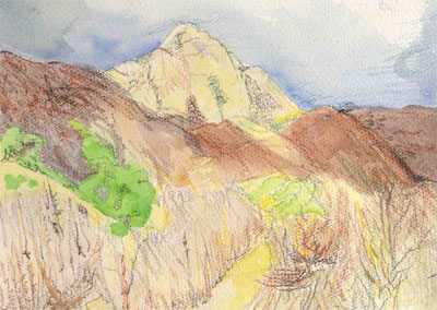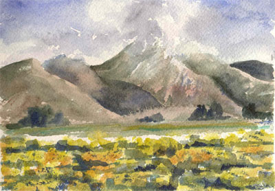 ![]() Storm Over Hollister Peak by Barbara Renshaw (watercolor) |