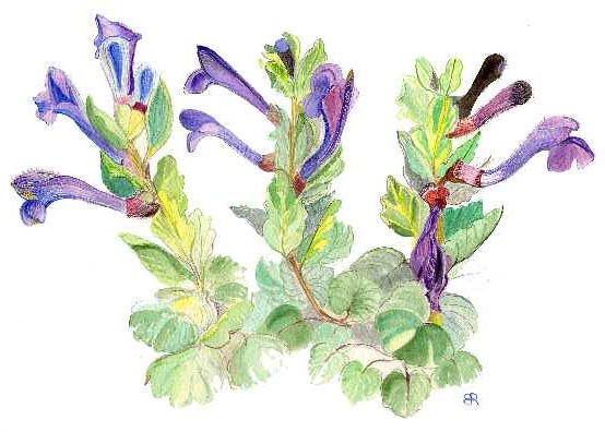 ![]() Danny's Skullcap, Scutellaria tuberosa by Barbara Renshaw (watercolor) |
