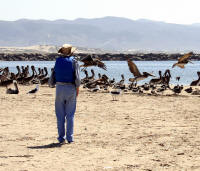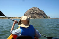 Bev preparing to leave Rock Kayak | Bev paddling toward Morro Rock | Bev observing pelicans on the sandspit (Click here to get the best 16"x12" 1489x1117 version ~2MB and unedited original) |