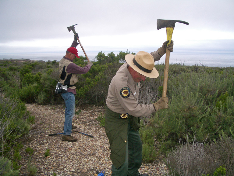 "Thanks to Docents who helped out with the AWN trail work day at MdO on Fri., May 19, 2006. Curt B., Randy B., Mike B., Dorothy E., and Barb R. were there, along with volunteers who have helped with other trail projects. We got some good brushing and clearing done, along the trail from Coon Creek parking lot to the Bluff Trail, and along the Deer Flat Trail. Shirley Sparling came out to greet us." -- Rouvaishyana