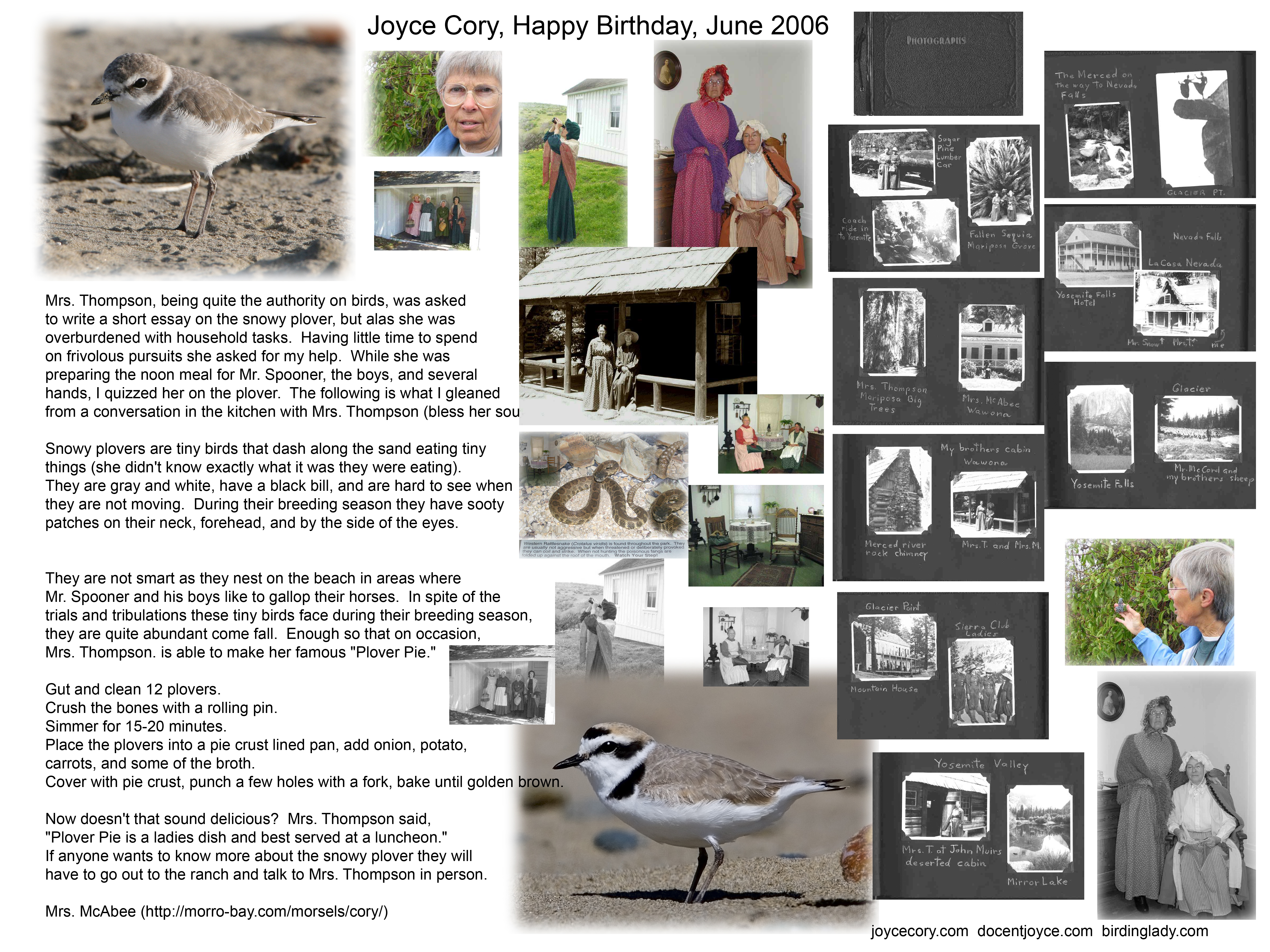 Joyce Cory's websites: docentjoyce.com joycecory.com birdinglady.com