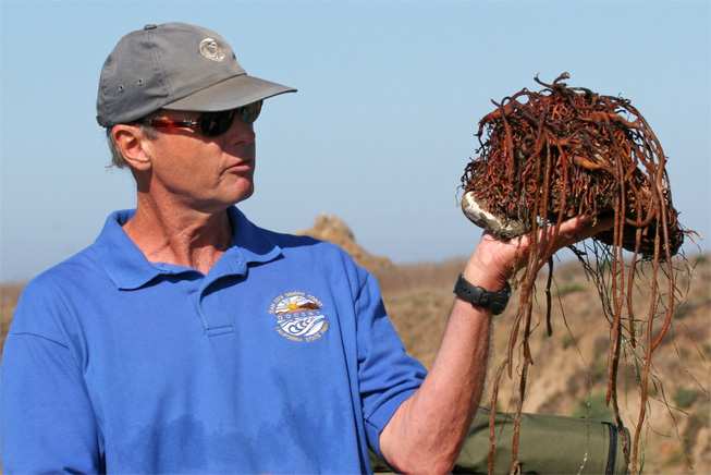 Phil Adams exhibits a kelp holdfast.