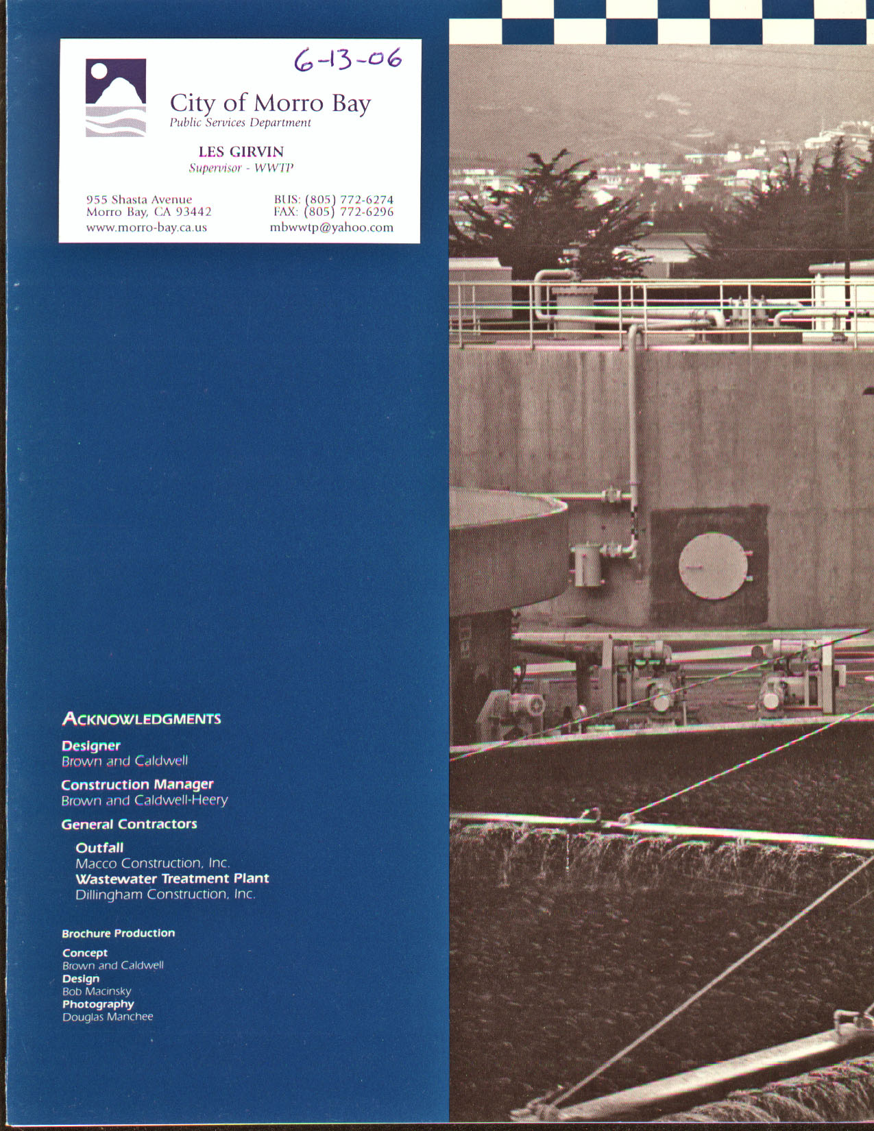 Wastewater Treatment Plant, led by Supervisor Les Girvin on June 13, 2006.