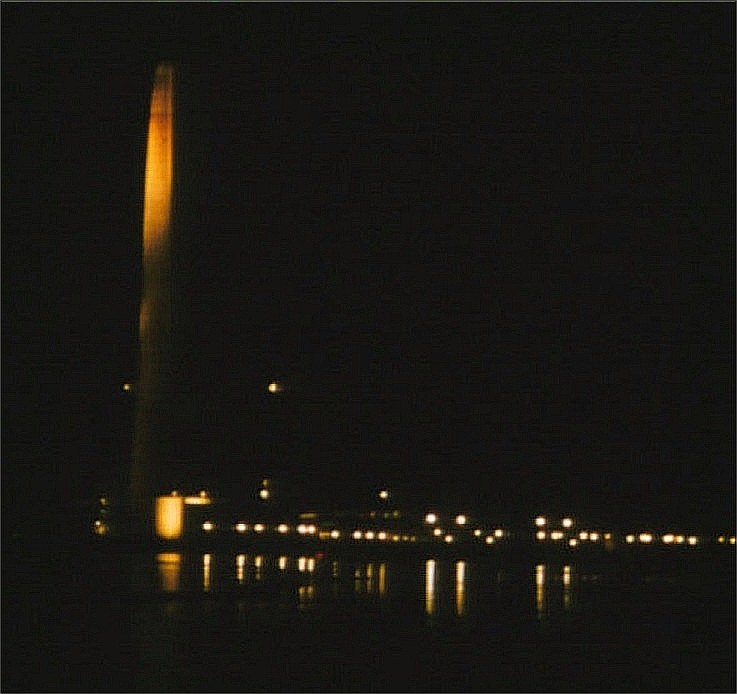 1956 A photo of PG&E's first exhaust stack, at night Courtesy Dave Dabritz |