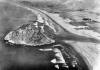 April, 1955. You can see the damage done to the breakwater due to high seas. Photo by Glen Bickford, from Morro Bay's Yesterdays, with permission. |