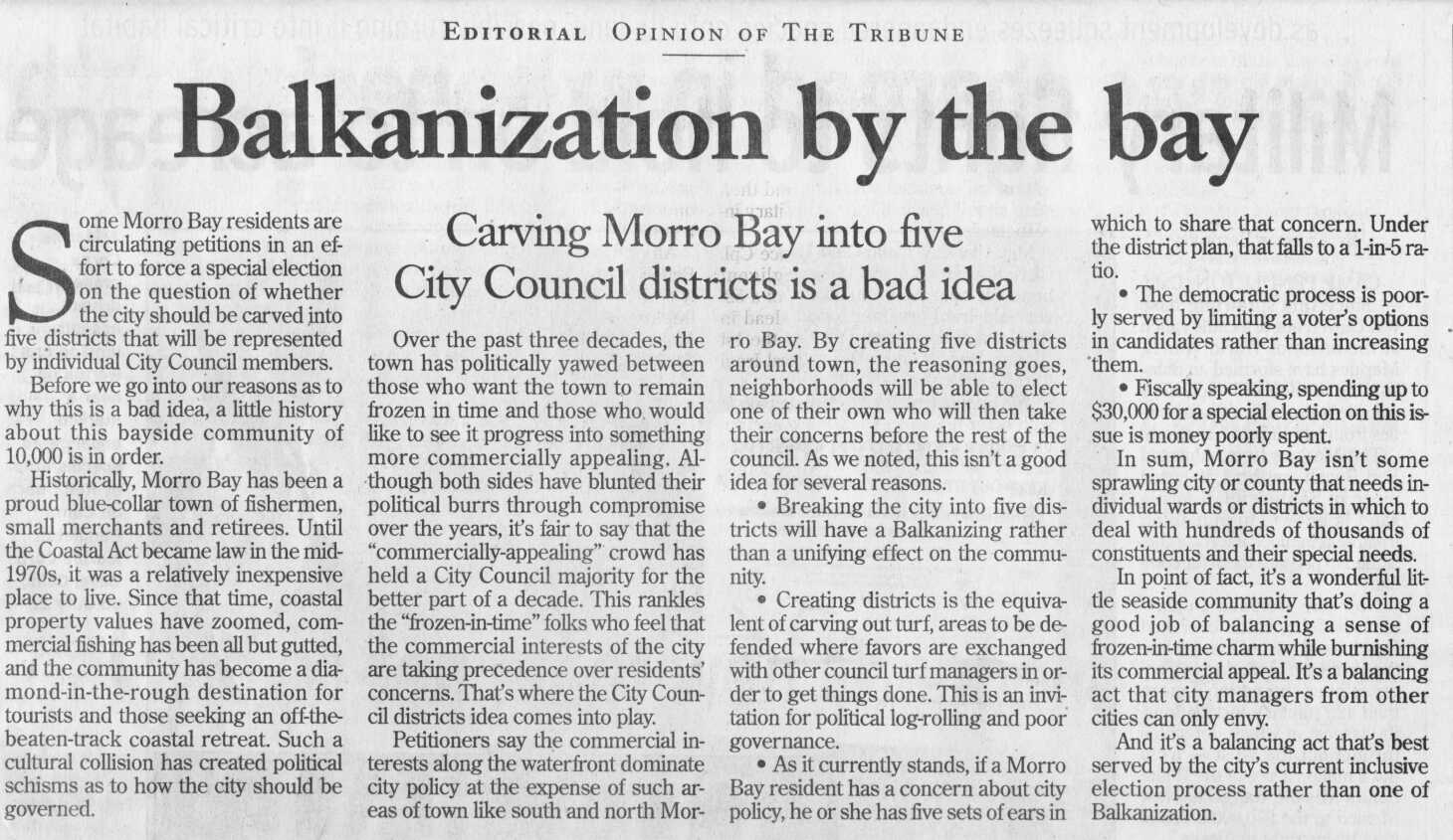 The idea of electing city councilmembers by district in Morro Bay has got to be