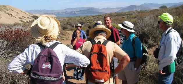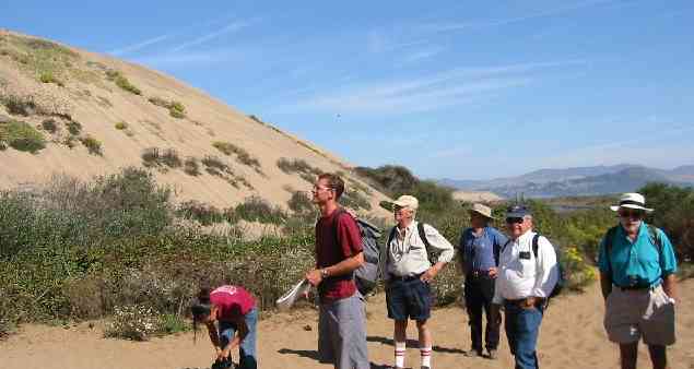 Description: Shark Inlet to a Beach Picnic. Hike through the dunes to the beach via Shark Inlet. Learn about birds, Indian shell middens and native plants. The estuary is home to many shorebirds and waterfowl. Bring lunch and water. Binoculars suggested. Meet at west end of Butte Drive (north of Sea Pines Golf Course), Los Osos. (Active) 5 mi., 4 hr.