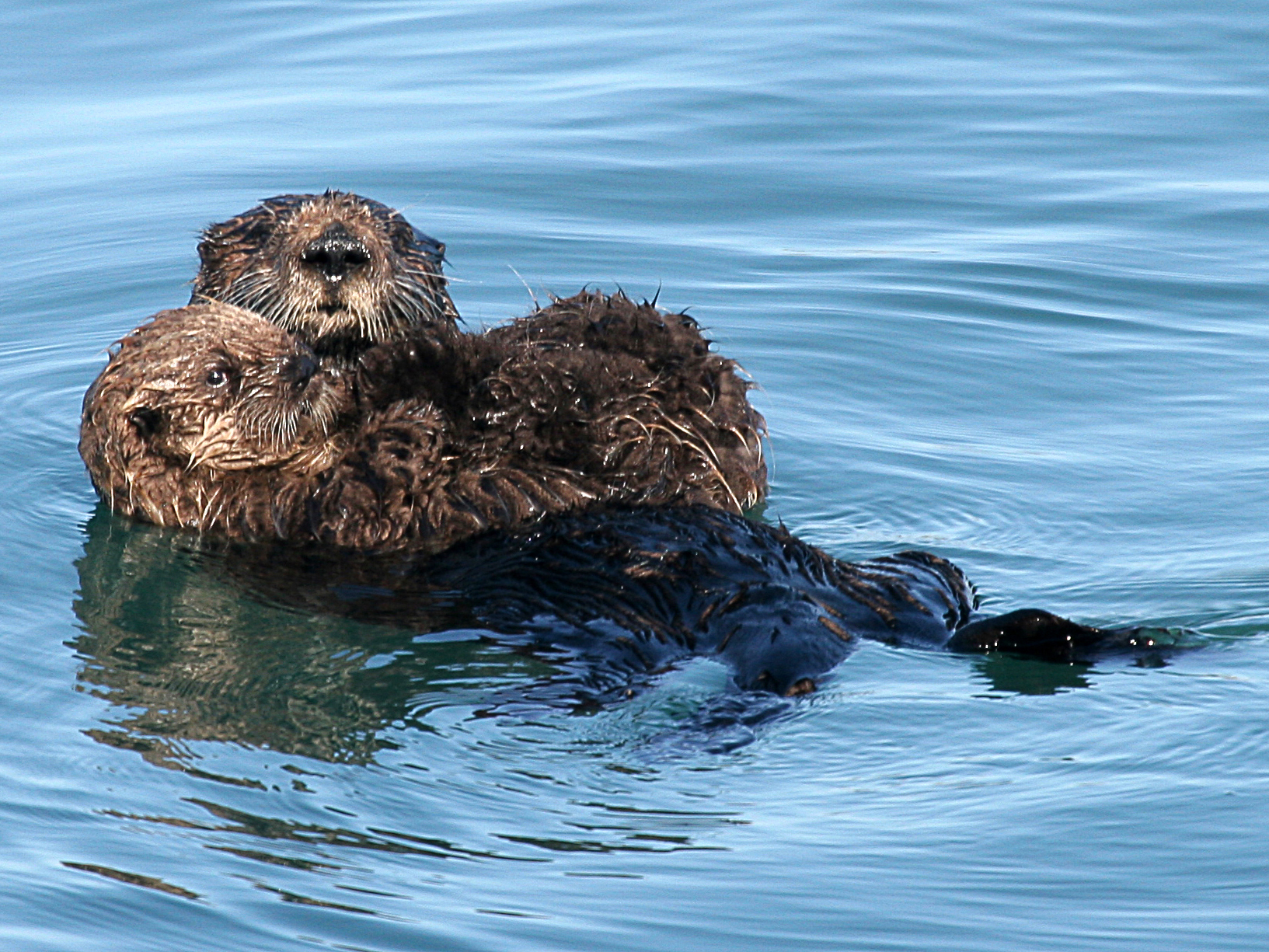 Mother Sea Otter with Pup in Morro Bay, March 30, 2005